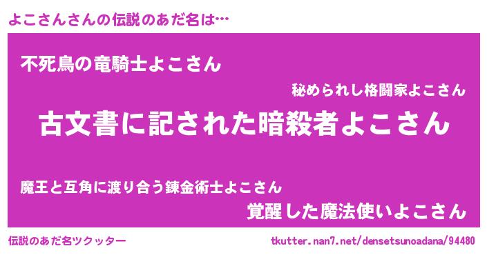 | ファンタジー風あだ名 | 『カークヨコラー』『ヨコディッシュ』 |