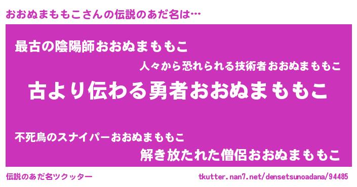 | 女子向けラノベタイトル風あだ名 | 『シンデレラおおぬまももこ家の靴箱館』 |