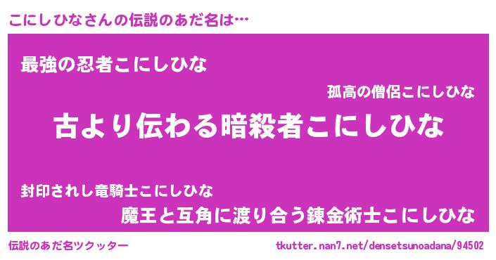 | ヒーロー風カッコイイあだ名 | 『ネオコニシヒナ』『仮面コニダー』 |