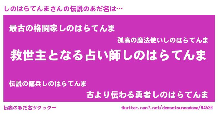 | 男性向けラノベタイトル風あだ名 | 『ノーゲーム・ノーシノハラテンマ』 |