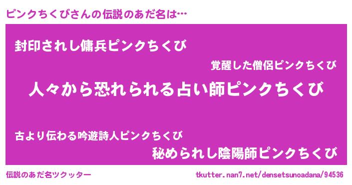| ヒーロー風カッコイイあだ名 | 『ウルトラ戦士ピンクチクビ』 |