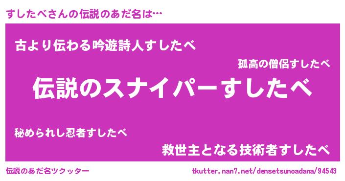 | 意味不明あだ名 | 『住所不定無職すしたべ(89歳)』 |