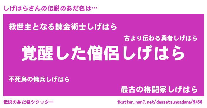 | 男性向けラノベタイトル風あだ名 | 『しげはらの嫁は女の子じゃないと思った?』 |