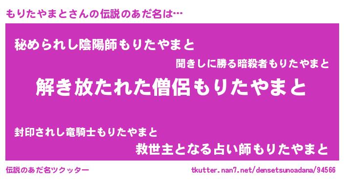 | 意味不明あだ名 | 『とにかく怪しいもりたやまと』 |
