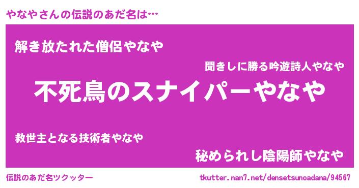 | ヒーロー風カッコイイあだ名 | 『スーパーヤナヤ』『暗黒騎士ヤナ』 |