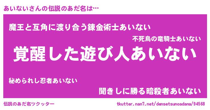 | ヒーロー風カッコイイあだ名 | 『炎刃騎士アイ』『最強戦士アイナイ』 |