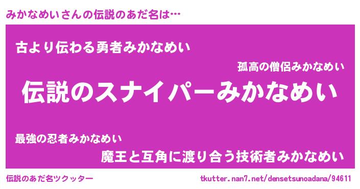 | ヒーロー風カッコイイあだ名 | 『スーパーミカナメイ』『ネオミカナメイ』 |