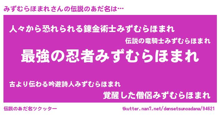 | ヒーロー風カッコイイあだ名 | 『最強戦士ミズムラホマレ』 |