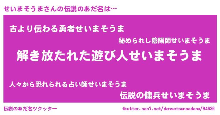 | 男性向けラノベタイトル風あだ名 | 『転生したらせいまそうまだった件』 |
