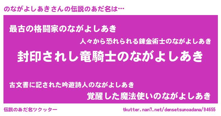 | 男性向けラノベタイトル風あだ名 | 『うちののながよしあきが世界を掌握している!』 |