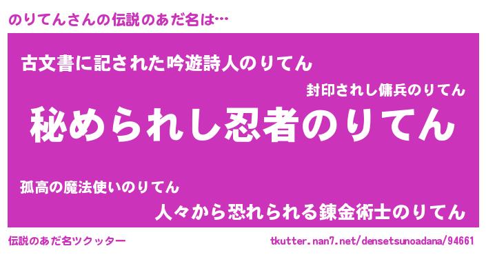 | 女子向けラノベタイトル風あだ名 | 『のりてんなんてお断りですっ。』 |