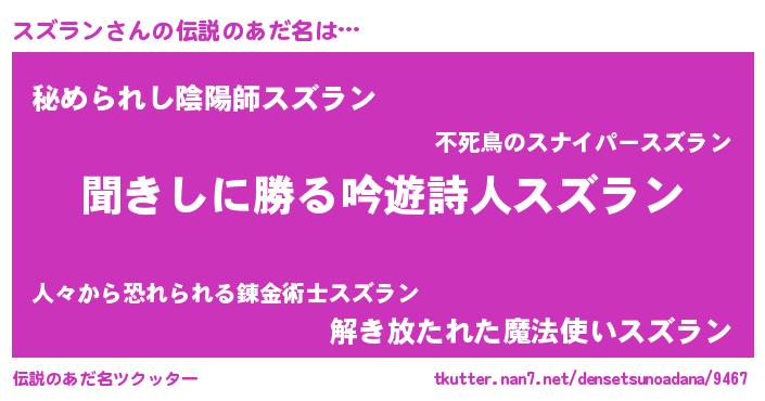| ファンタジー風あだ名 | 『スズディッシュ』『カークスズラー』 |