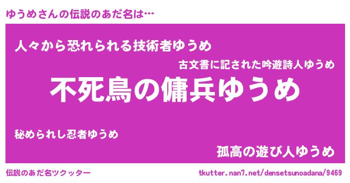 | ヒーロー風カッコイイあだ名 | 『スーパーユウメ』『サイバー戦士ユウメ』 |