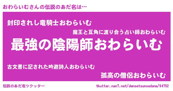 | ヒーロー風カッコイイあだ名 | 『ウルトラおわらいむマン』 |
