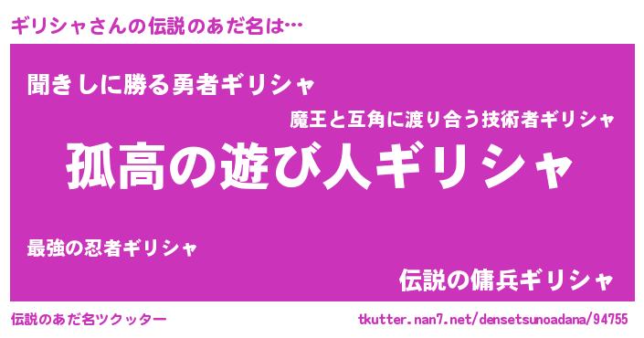 | 胡散臭い通販商品みたいなあだ名 | 『信頼と実績のペンダント…その名も「ギリシャ」』 |