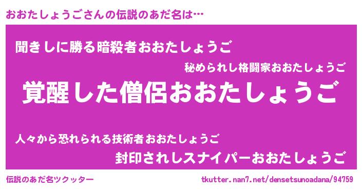 | 肩書あだ名 | 『おおたしょうご少将』 |