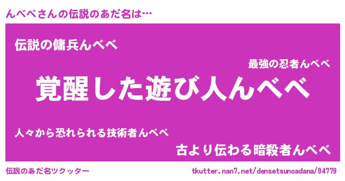 | ヒーロー風カッコイイあだ名 | 『炎刃騎士ンベ』『超時空戦士ンベベ』 |