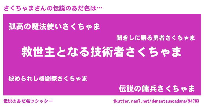 | ヒーロー風カッコイイあだ名 | 『慈愛の使者さくちゃま』『暗黒騎士サク』 |
