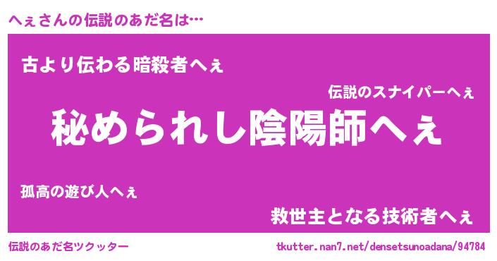 | ヒーロー風カッコイイあだ名 | 『ウルトラへぇマン』『ネオヘェ』 |