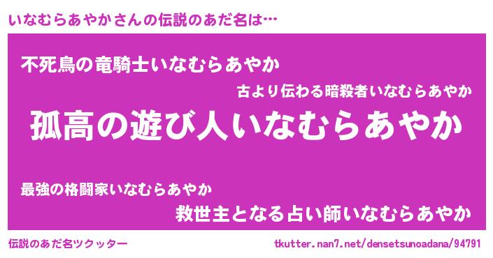 | 恥ずかしいあだ名 | 『イナムラアヤカデラックス』『いなちん』 |