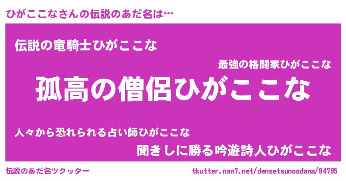 | 女子向けラノベタイトル風あだ名 | 『シンデレラひがここな家の靴箱館』 |