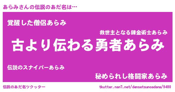 | ヒーロー風カッコイイあだ名 | 『ネオアラミ』『幻影騎士アラ』 |
