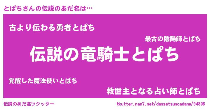 | 男性向けラノベタイトル風あだ名 | 『とぱちの憂鬱』『はたらくとぱちさま!』 |