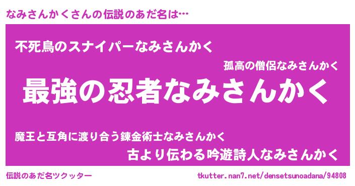 | ファンタジー風あだ名 | 『エターナルナミサンカクー』 |