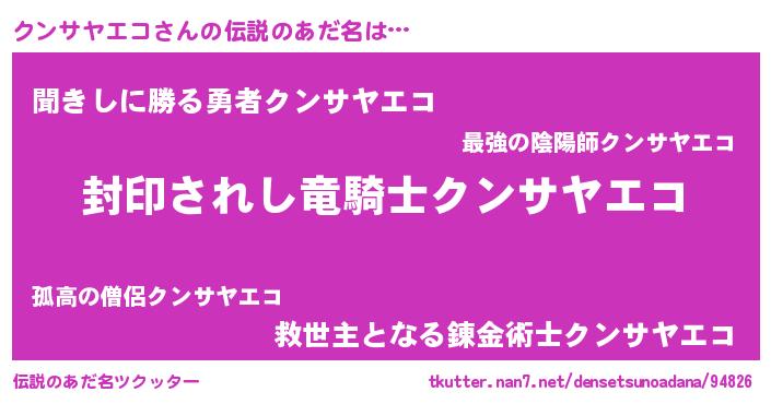 | 男性向けラノベタイトル風あだ名 | 『クンサヤエコアートオンライン』 |
