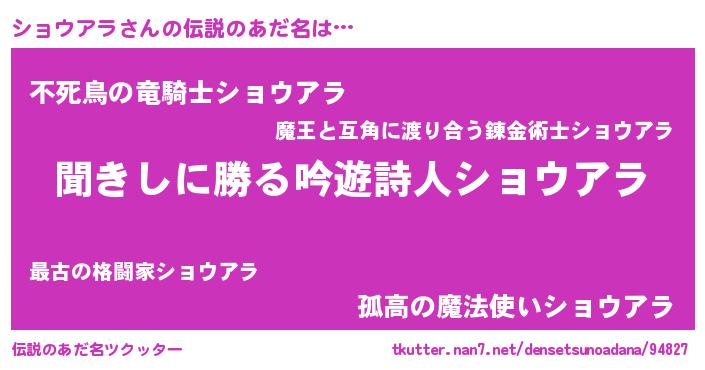 | 意味不明あだ名 | 『自称ショウアラ』『永久保存ショウアラ』 |