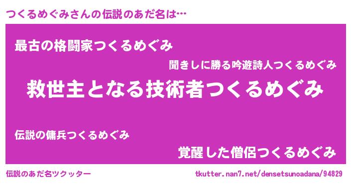 | ヒーロー風カッコイイあだ名 | 『慈愛の使者つくるめぐみ』 |