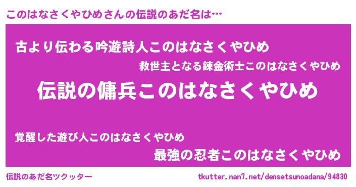 | ヒーロー風カッコイイあだ名 | 『スーパーコノハナサクヤヒメ』 |