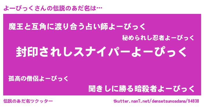 | 胡散臭い通販商品みたいなあだ名 | 『億万長者になれる霊験あらたかなお札…その名も「よーぴっく」』 |
