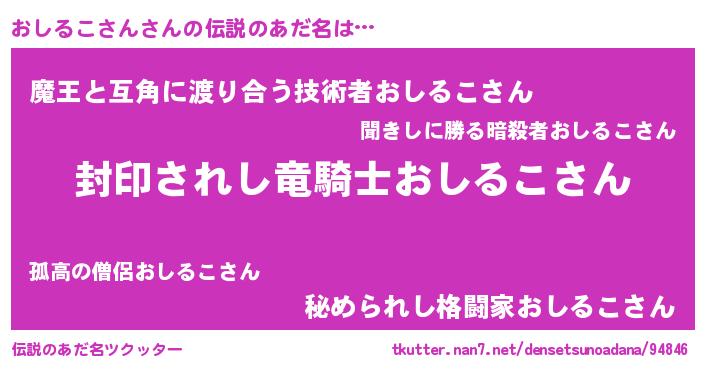 | ヘコむあだ名 | 『おしにー』『つくし』『おし太郎』 |