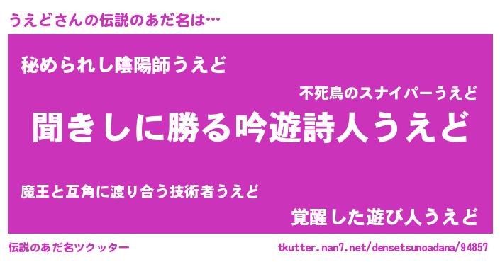 | ヒーロー風カッコイイあだ名 | 『ネオウエド』『ウルトラうえどマン』 |