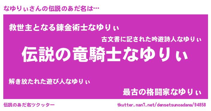 | 男性向けラノベタイトル風あだ名 | 『なゆりぃの憂鬱』 |