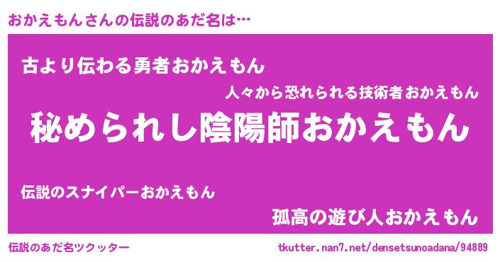 | 意味不明あだ名 | 『めかぶ科おかえもん属』 |