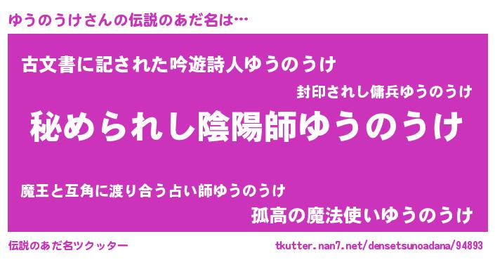 | 意味不明あだ名 | 『住所不定無職ゆうのうけ(95歳)』 |