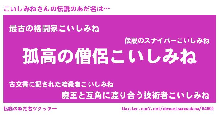 | 意味不明あだ名 | 『とにかく怪しいこいしみね』 |