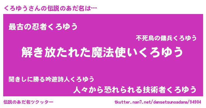 | ヒーロー風カッコイイあだ名 | 『幻影騎士クロ』『ウルトラくろゆうマン』 |