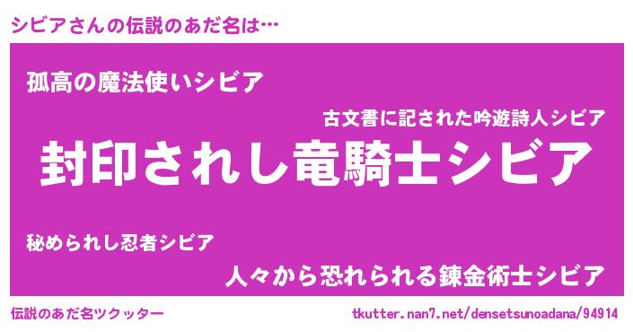 | ヒーロー風カッコイイあだ名 | 『スーパーシビア』『天弓騎士シビ』 |