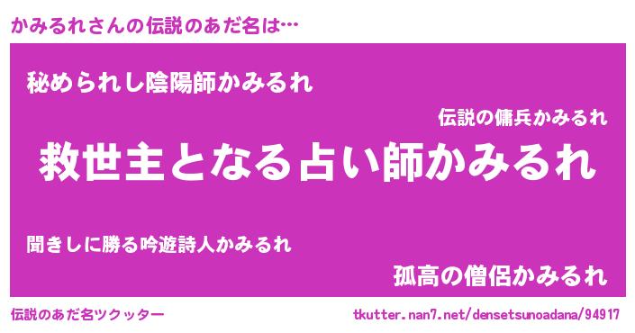 | ヒーロー風カッコイイあだ名 | 『究極戦士カミルレ』『幻影騎士カミ』 |