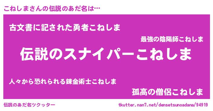 | 男性向けラノベタイトル風あだ名 | 『こねしまの憂鬱』 |