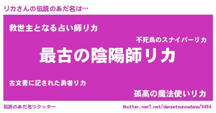 | 意味不明あだ名 | 『リカフォーエバー』『自称リカ』 |