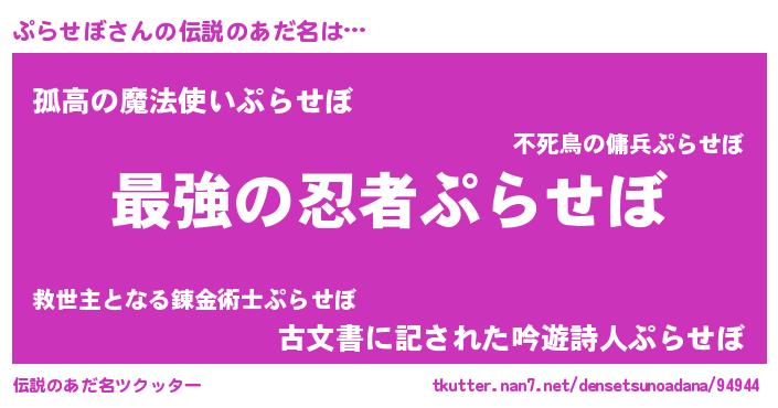 | ヒーロー風カッコイイあだ名 | 『究極戦士プラセボ』『仮面プラダー』 |