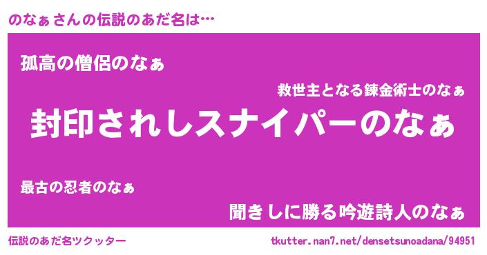 | ヒーロー風カッコイイあだ名 | 『スーパーノナァ』『仮面ノナダー』 |