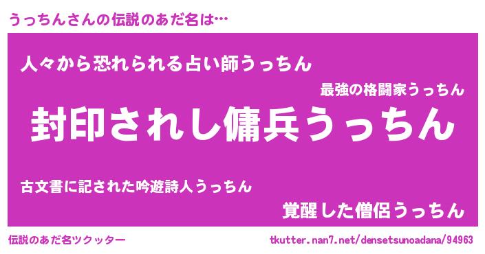 | 胡散臭い通販商品みたいなあだ名 | 『あなたにだけ特別に提供する限定10本のレアな日本酒…その名も「うっちん」』 |