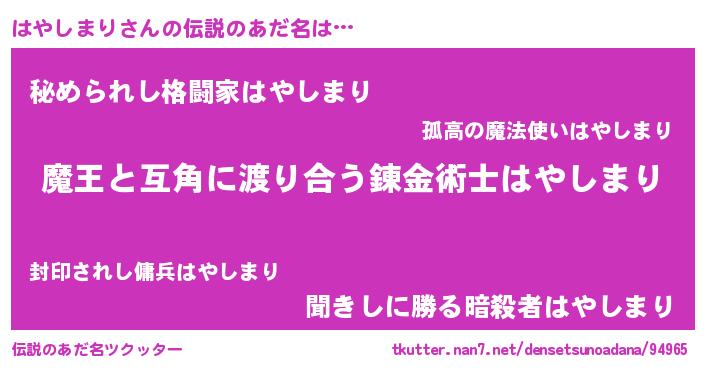 | 男性向けラノベタイトル風あだ名 | 『転生したらはやしまりだった件』 |