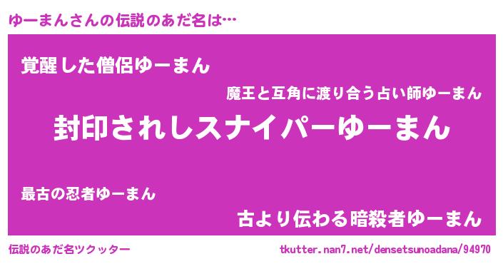 | ヒーロー風カッコイイあだ名 | 『スーパーユーマン』『幻影騎士ユー』 |