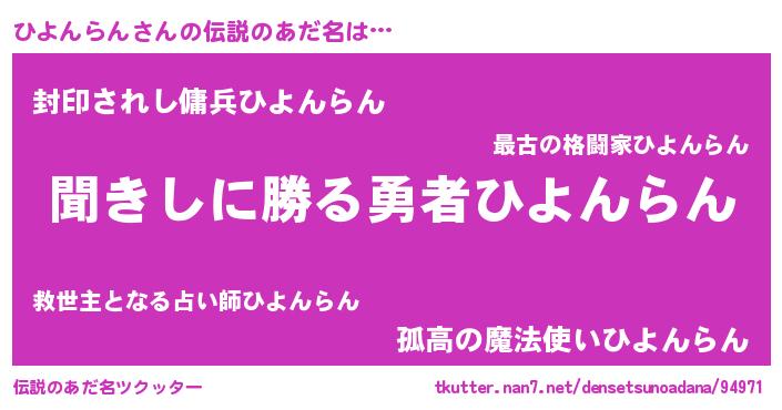 | ヒーロー風カッコイイあだ名 | 『ネオヒヨンラン』『スーパーヒヨンラン』 |